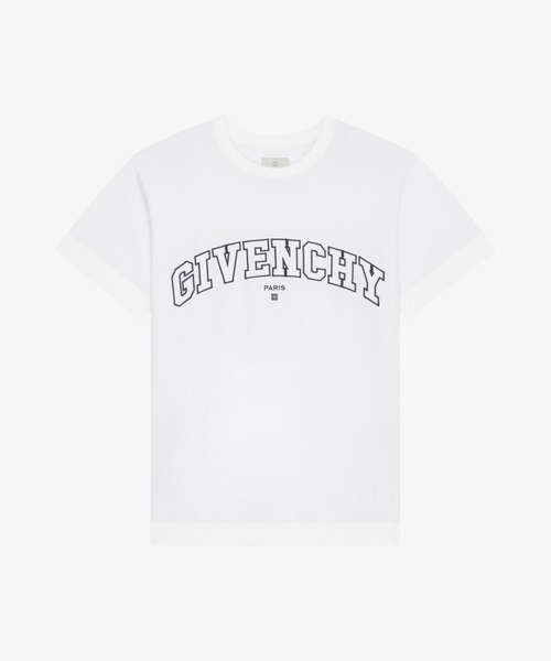 胸元にブラックのGIVENCHY カレッジシグネチャー刺繍入り、ソフトジャージー Tシャツ。 バックにブラックの4Gエンブレム刺繍。