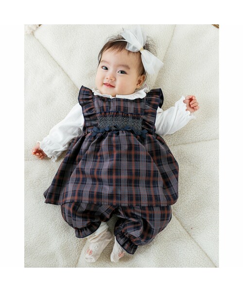 チュニックとパンツがセットになった2点セットアイテム。 カラーによって素材を変えているので、2種類からお選びいただけます♪ コールテン素材がかわいらしいブルーと、オレンジの効いたチェック生地がオシャレなネイビー系の2色展開です。 スモッキング刺繍のうえにのせたリボンがかわいい♪ キレイなシルエットになるように、後ろはボタン開きタイプになっています。 肩フリルや胸下から広がるフレアシルエットなど、女の子らしいシルエットにもこだわった1枚。 季節によって合わせるインナーを変えて、長い間楽しめるのが嬉しいポイント◎ Tシャツやブラウス、タートルネックを合わせてコーディネートをお楽しみいただけます。 ギフトにもおすすめなアイテム。 お姉ちゃんサイズでの展開もあるので、姉妹でお揃いも可能です。 お揃いコーディネートで家族のお出かけが楽しくなること間違いなし! ワンピース(1803-47003) Tシャツ(1815-47095) 2022年秋冬女の子アイテム。 【SLAP SLIP(スラップ スリップ)】 ~子どもの欲しいをカタチに~ ヨーロッパのこどものように 子どもらしい今しか着れないナチュラルなかわいさを提案 どこか上品で清楚感漂うフレンチカジュアルは いつものコーディネートをさりげなく格上げ