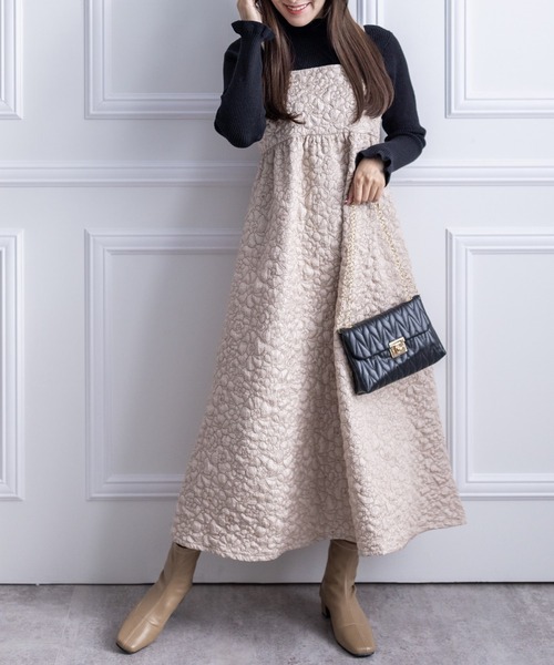 ふくれJQロングキャミワンピース 【デザイン】 大人カジュアルで甘すぎないふくれJQロングキャミワンピース。 ウエストの切り替え位置が高く、立体感のある素材がトレンド感をプラス。 型崩れしにくいので、年中着回ししやすいアイテムです◎ 【素材感】 着心地の軽いポリエステル生地 伸縮性:なし / 透け感:なし / 裏地:なし / ウエストゴム:なし 手洗いによる洗濯可 / ドライ・ウェットクリーニング可 【コーディネート】 秋冬のデイリーコーデには、ロンTやボリューム感のあるニットトップスと合わせて温かくオシャレに。 春夏にはTシャツやサマーニット、ノースリーブトップスと合わせて涼やかに…♪ 【※お取り扱い上のご注意】 1:モニター環境等により実際の商品と多少色味が異なって表示される場合がございます。予めご了承下さい。 2:屋外で撮影された商品は、天候により多少実際のカラーと異なる場合があります。商品のカラーはトルソー(マネキン)の商品画像をご参照ください。 3:濃い色の商品は、お洗濯や摩擦等による移染にご注意ください。 4:末永くご愛用頂く為に、アテンションタグ・洗濯ネームを必ずご確認の上、着用又はお取り扱い下さい。 5:生産時期により、色、サイズ、デザイン、素材の質感が多少が異なる場合がございます。あらかじめ御了承下さいませ。