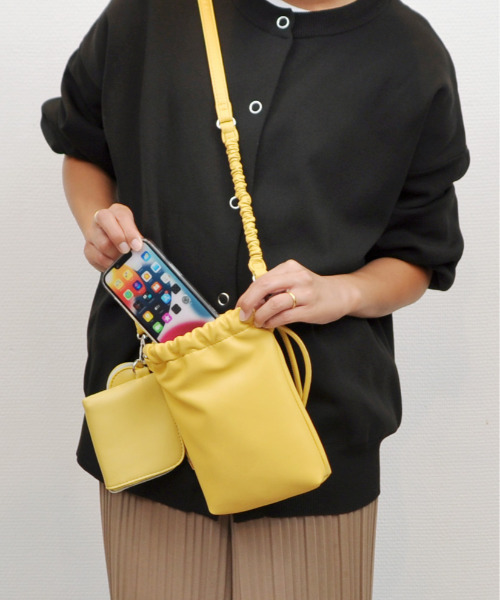カシュカシュ cache cache / バンジーコード巾着スマホショルダー ■デザイン&ポイント ソフトな合皮のモバイルショルダーバッグ。 財布として使えるポーチとイヤホンなどが入れられるポーチがセットになっているのでこれだけでお出かけOK。 それぞれ取り外しができてアレンジ可能なのもポイント。 ゴム仕様のショルダーが使いやすくデイリーユースはもちろん、旅行の時にも活躍してくれそう。 ■アテンション ・素材特有のにおいがする場合がございます。 においが気になる場合は一度陰干しをされた上でご使用ください。 ■ブランドコンセプト -- cache cache / カシュカシュ -- カシュカシュとはフランス語で「かくれんぼ」。 ガーリッシュとちょっと背伸びをした大人っぽさをミックスしたデイリーカジュアルなファッション小物を展開。 カラフルで素朴なハンドクラフトやかわいらしいモチーフ使いで、洋服とのコーディネートに可愛らしさと遊びをプラスするバッグを提案。 ■商品のお気に入り登録をお願いします 【カートに入れる】横のハートマークをクリック 再入荷やラスト1点のお知らせ、セール情報などのお知らせを受け取ることができます ■下記の品番をお申し付け下さい。 品番:01-00-78400 バッグ バック かばん ショルダーバッグ お財布ショルダー モバイルショルダー スマホショルダー ミニショルダー トラベル 旅行 カジュアル レディース 女性用 アンビリオン unbillion カシュカシュ cache cache cachecache 010078400