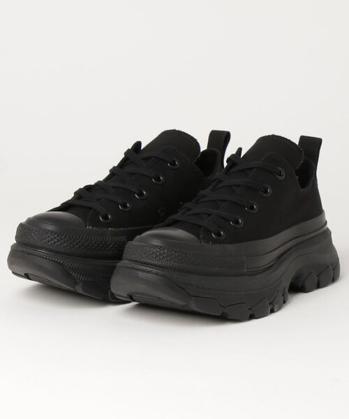 オールスター 100のニューソールモデル。 トレッキングシューズをモチーフとしたアウトソールをオールスターに合体させたデザイン。厚みのあるE.V.A.ミッドソールやTractionSoleの意匠をアレンジしたアウトソールにより、クッション性と防滑性が向上。 アッパーは、水が浸みこみにくく、汚れもつきにくい撥水キャンバス仕様。 アッパーとソールのカラーを合わせ、ミニマルな印象に仕上げた一足。