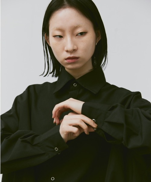 OVERSIZED SNAPS SHIRT / オーバーフィットスナップシャツ スナップボタンがトレンドライクでデザイン性の高いオーバーフィットシャツ。 シンプルで着回し力の高いシャツこそシルエットやボタンで個性を表現するのが◎ 身幅が広くルーズなシルエット、ロングテールデザインでこなれ感を演出します。 カラー展開も定番のブラックに加え、ミント・ピンクと これからの季節インナーとして襟元だけ見せて差し色にも◎ 春や夏には一枚で着たり、羽織りとしても大活躍なシーズンレスにお使いいただけるアイテムです! ミディアムサイズとラージサイズのサイズピッチが広めに設計されているので、 ユニセックスでお使いいただけると同時に、女性がラージサイズをお選びいただいても かなりオーバーなシルエットでご着用いただけ、モードな着こなしが叶います。 ※ユニセックスサイズ展開のため、サイズ詳細はサイズスペックをご参照ください。 (モデル着用サイズは写真下に記載がございます。) ※商品の色味は詳細画像をご参照ください。 ※ご覧のモニター環境や撮影環境により実際の商品と多少色味が異なって見える場合がございます。ご理解の程よろしくお願いいたします。 ※詳しいお手入れ方法は商品タグをご参照ください。