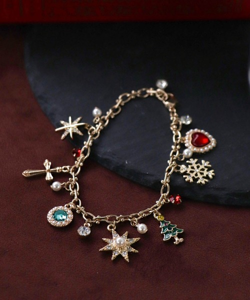 ■クリスマスに付けたい♡チャームブレスレット■この時期だけ楽しめる特別感のあるアクセサリーが登場♡ クリスマスのモチーフを贅沢に施したチャームブレスレット☆ ツリーや星・雪の結晶などクリスマスムードを高めてくれるデザインです♡ バックチャームとしてもお使いいただけます◎ギフトにもおすすめです♡▼商品画像について▼※撮影場所やお使いのモニター環境により実際の商品と若干お色味が異なる場合があります。 =======================《お気に入り登録》でお得な情報がたくさん!▼商品のお気に入り登録▼♡をクリックして、お気に入り登録をすると再入荷通知や、ラスト1点の通知をお知らせします。▼ブランドのお気に入り登録▼お気に入りショップに追加していただくと、いち早く ThreeFourTime のお得な情報・新入荷情報を受け取ることができます。=======================