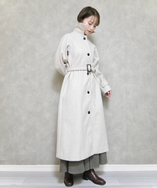 今季大人気アウターのステンカラーロングコートが登場です。 適度なオーバーサイズ感とラグランスリーブが トレンドライクなデザイン。 衿部分にホックがついているため 寒いときはホックを閉めれば風を防げます◎ ホックを付けた状態で衿を立てて スタンドカラー風に着るのもおすすめ。 ウール混素材としっかり長い丈感により 防寒性はばっちりです。 共布ベルトをつけてウエストマークしても ベルトなしでさらっと羽織るもの どちらも可愛いシルエットとなっております。 今季1枚は持っておきたい トレンドのアウターです。 お見逃しなく♡ ―――――――――――― 厚み:厚手 伸縮性:なし 裏地:ある 透け感:なし ―――――――――――― ▼▼ぜひ、お気に入りのご登録をお願いします▼▼ ♡をクリックして下さい。 お気に入り登録をしていただきますと、再入荷通知や、ラスト1点の通知、セールの際の通知も受け取ることができます。 【ATTENTION】 ※アイロンの際はあて布の使用をおすすめいたします。 ※商品画像につきましては、なるべく実物に近づけて撮影いたしておりますが、 閲覧頂いておりますモニターによって、画像と実際の商品のお色に多少の差異が生じる場合が御座います。予めご了承下さい。 ※サイズにつきましては、すべて平台に平置きにし測定しております。 商品によっては実際の製品上がりサイズと1~3㎝程、多少誤差が生じる場合がございます。 予めご了承ください。