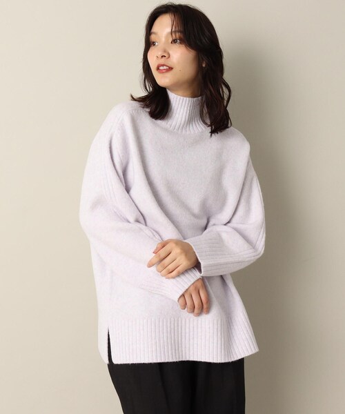 【デザイン】 昨年とても人気だったもちもち素材に新デザインが登場です。 袖の編地切替がポイントで、太幅の襟と裾がメリハリを付けてくれるデザインです。 【素材】 柔らかくふっくらとした肌触り。 目の詰まったしっかりとした肉感ですが、 軽さがあるのが特徴です。 ぱきっとしたカラーも柔らかい印象にしてくれる素材なので、 今期トレンドのカラーニットもこの素材なら挑戦しやすいはず! ※オフホワイト(003)は透け感があるため、インナーの着用をおすすめします。 こちらの商品は主に冬に着用いただける商品です。 モデル情報:身長162cm B72 W57 H82 着用サイズ:00 店舗へのお問い合わせ商品番号:P93-15004 ●製品寸法: 00(フリーサイズ):着丈63cm B112cm 裄丈73cm 備考: