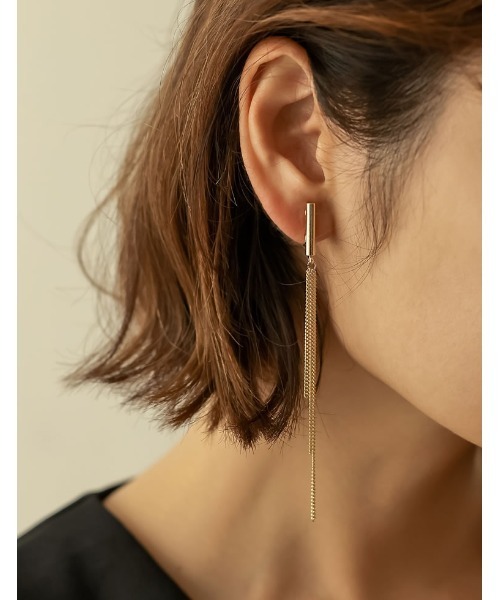 優美に揺れるチェーンがモードな印象に チェーンデザインがアクセントになったイヤリング。 優美に揺れるロングチェーンが、顔回りをぱっと華やかな印象に。 シンプルなデザインながら、普段のスタイリングに取り入れるだけでぐっとエレガントな雰囲気を演出。 デイリー使いにはもちろん、結婚式などのオケージョンにも相応しい品のあるイヤリングです。 ※こちらの商品は肌に直接触れる商品のため、着用後の返品・交換はお受けいたしかねます。 ■モデル着用写真は撮影環境により、 多少実際のカラーと異なる場合がございます。 お気に入りショップにご登録いただきますと、 ショップニュースを、いち早くお届けいたします。