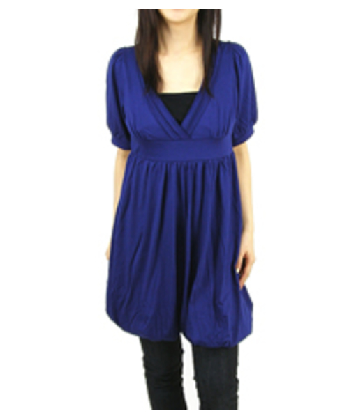 ハイウエストのバルーンチェニックワンピ。襟元は裁ち切りの共生地をラインのように重ね、パフスリーブとバルーンスカートで仕上げた、カット素材の着心地の良いアイテム。ミニ丈がレイヤードスタイルに活躍しそう。モデルスペック: 身長158cm・体重42kg