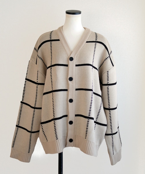 ●ユニセックスで着用可能アイテムとなります。 ───────────────────────────── ◆アイテム詳細◆ BIGシルエットがかわいいチェックカーディガン。 ウールアクリルのジャガードニットで、大きなチェック柄がポイント。 シックなチェック柄なので合わせやすく、1枚で様になるオーバーカーデです。 羽織にはもちろん、フロント釦を閉めてプルオーバー風に着こなし、しっかりした編地なので、コートを着る前のアウターとしても使える一枚です。 ───────────────────────────── 【COLOR】ベージュ・グレー・ブラック 【SIZE】サイズ FREE 平置き(㎝) 着丈71 裄丈85 身幅64 裾幅57 【素材】アクリル90% 毛10%