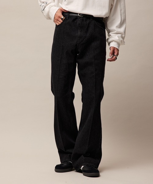 【スタイルアップデニム】リラックスフレアデニムパンツ 【素材】 10オンスの通年着用できるコットンベースのデニム素材を使用しております。 【デザイン・シルエット】 デニムパンツと言えばの定番型の5ポケットデザインで70’sの古着からサンプリングし今っぽくリデザインしたブーツカットのフレアデニムパンツです。 全体的にリラックス感のあるシルエットで膝に向かって程よく緩やかにテーパードし、膝から裾に向けては、広がるフレアシルエットで無骨な印象のデニムでありながらスマートなカッティングで少し上品な印象のアイテムです。 ベルトの裏側には、スピンドルが付いており、あえてルーズに履きたい方は、1サイズ、2サイズアップしたサイズでの着用もしやすい仕様になっております。 【カラー】 履き込んだようなウォッシュ感と霜降りのあるサックスブルーとほとんど加工感のない深いネイビーの2色展開です。 【スタイリングポイント】 トレンドのデニムのSET UPスタイルがおすすめです。 また裾幅を広く設定しているためブーツやボリューム感のあるシューズとの合わせもおすすめです。 【セットアップ対応品番】 ALL73000 ルーズデニムトラッカージャケット 【関連商品】 ALS73010 ルーズワイドレッグデニムパンツ ALL82070 デニムハンティングジャケット ALS82030 モンスターワイドデニム 裏地:なし 光沢感:なし 透け感:なし ポケット:あり 伸縮性:無し 生地の厚さ:普通 【モデル着用サイズ】 MEN1: 身長181cm 着用サイズL MEN2: 身長185cm 着用サイズL MEN3: 身長180cm 着用サイズL MEN4:身長174cm 着用サイズL(着用カラーブラック) 『re_k by JUNRED』 profile: 【recreation】と【key 鍵】【kite 舞い上がる】【kvell 自慢したくなる】による造語『レク バイ ジュンレッド】通称“レク”。 ファッションを楽しむ“鍵”となり、着ることで気分が“舞い上がる”“自慢したくなる”そんな思いを込めたクリエーション。 「おしゃれ」だけではなく、ユースカルチャー、趣味、遊びなど生活の中の“楽しい”に寄り添う、トレンド感のあるクリーンなスタイルを提案。 ※撮影場所やライティング、お使いのモニター環境によって色の見え方が異なる場合がございます。 ※画像の商品はサンプルです。 実際の商品と仕様、加工、サイズが異なる場合がございます。 ※商品のカラーは詳細画像の色味をご参照ください。 ■re_k by JUNRED 23SS デニムセットアップシリーズ!■