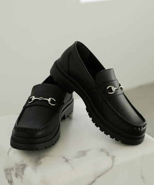 トレンドのタンクソールを取り入れたローファー。 履くとほどよいボリューム感になり、脚長効果も発揮してくれます。 さり気ないゴールドのビットが上品なポイントに。