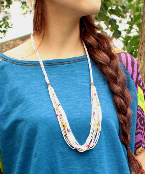 さりげなく散りばめられたカラフルな小花がポイントのボリュームネックレス。 コーディネートのアクセントにオススメです!! ※こちらの商品は、職人による手作りとなります。 その為、形や色に多少の誤差が生じる場合があります。ご了承ください。 Amina Collection Co.,LTD.