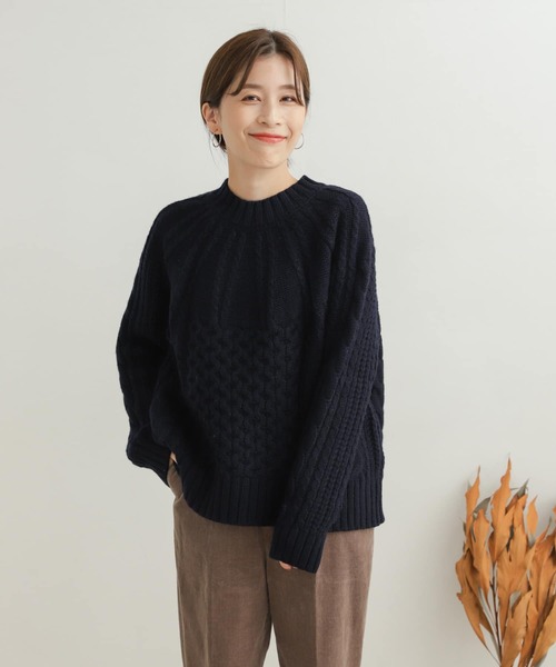 ケーブル柄が季節感のあるニットは、冬のコーディネートの主役になるアイテム。 程よくボリュームの出るシルエットが女性らしい抜け感を演出し、大人ナチュラルなスタイルにマッチします。 しっかりときれいに編まれたリブ編みハイネックがポイントになり、顔周りを華やかにしてくれます。 ※商品画像は、光の当たり具合やパソコンなどの閲覧環境により、実際の色味と異なって見える場合がございます。予めご了承ください。 ※商品の色味の目安は、商品単体の画像をご参照ください。 ----------------------------- 透け感:なし 伸縮性:あり 裏地:なし 光沢:なし ポケット:なし -----------------------------
