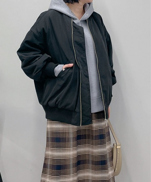 ボリュームシルエットがトレンドライクな中綿MA-1が登場! 商品ポイント ・中綿が入っていて真冬でも暖かく着られるブルゾン ・トレンドのゆったりしたサイジングで、中にニットを着てもごわつきにくく抜け感のある着こなしが叶う ・適度な厚みと微光沢のある生地感で大人カジュアルな印象になる おすすめコーディネート 今年人気のロングスカートやワンピースと合わせた甘辛ミックスなコーディネートがおすすめ! 使い勝手の良いベーシックなカラー展開で、インナーにカラーアイテムを合わせるのも◎ 素材表地:ポリエステル100% 裏地:ポリエステル100% 中綿:ポリエステル100% リブ:ポリエステル97%、ポリウレタン3% 洗濯表記:ドライクリーニング 透け感:なし 裏地:あり 伸縮性:なし 生地の厚さ:やや厚手 ポケット:あり ファスナー:あり 【スタッフ着用コメント】 《こま》 身長:159cm/着用サイズ:F 体型:普通/骨格:ウェーブ/パーソナルカラー:イエベ春 軽い着心地でデイリー使いにおすすめです。腰回りもカバーしてくれるので、すっきりしたボトムスとも相性抜群です。 《YUI》 身長:150cm/着用サイズ:F 体型:ぽっちゃり/骨格:ウェーブ/パーソナルカラー :イエベ春 お尻カバーしてくれるシルエットでぽっちゃりさんにおすすめです。甘めなワンピースに着て甘辛MIXなコーデで着たいです。 《ゆうき》 身長:152cm/着用サイズ:F 体型:ぽっちゃり/骨格:ストレート/パーソナルカラー :イエベ春 カジュアル好きな私にうれしいサイズ感です。 ゆったりしているパーカーと合わせても着れる適度なゆとりのあるデザインです。 《RINO》 身長:148cm/着用サイズ:F 体型:普通/骨格:ストレート/パーソナルカラー :ブルベ冬 中綿が詰まった肉厚MA-1♡ カジュアルなテイストのワンピースの羽織にぴったり 骨格タイプ ストレート:全体的に立体型で筋肉質。ひざ下はすらっと細め。ボディラインにメリハリがある。 ウェーブ:上半身が薄く、華奢。緩やかな曲線のボディライン。下半身に重心があり女性らしい体型。 ナチュラル:筋肉や脂肪があまり感じられない体型。腰の位置が高く骨や関節が目立ちやすい。 ============================ 【注意点】 ※画像の商品は光の照射や角度、お使いのモニター環境により、 実物と色味が異なる場合がございます。 あらかじめご了承下さいませ。 ============================ 【お買い物をもっと便利に楽しく♪】 『♡』をクリックでお気に入り登録 ・「商品のお気に入り登録」で・・・ ラスト1点や再入荷の通知が届きます。 登録して頂いた商品だけが対象となる、あなただけのタイムセールが開催されることも! ・「ブランドのお気に入り登録」で・・・ 新商品や再入荷など、いち早くブランドのお得な情報を受け取ることができますので、ご登録をおすすめします! ============================ #大人カジュアル#きれいめカジュアル#大人シンプル#マストアイテム#今買いアイテム#アウター#ブルゾン#通勤コーデ#お出かけコーデ#着回しコーデ#高見えコーデ#オーバーシルエット#ボリューム袖#中綿#MA-1#オーバーサイズ