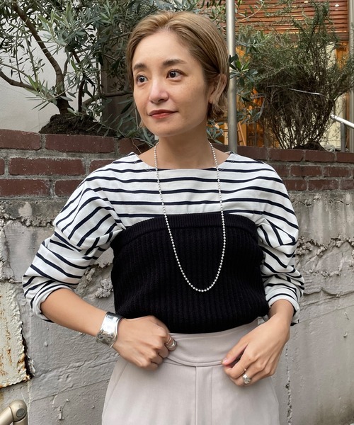 ♦今年トレンドのビスチェがニットで登場! コンパクトなサイズ感なので、レイヤードしやすいのが嬉しいポイント。 カットソーやタートルと合わせた上に、カットジョーゼットキャミサロペを着てレイヤード見せしたり、 シャツの上からレイヤードするのもおすすめです。 ・いつものスタイリングに重ねるだけで一気にトレンド感UP ・レイヤードしやすいシルエット ・取り入れやすいベーシックなカラー展開 <おすすめスタイリング> 2WAYボウタイシャツ(SNZ1022504A0001)や、カットジョーゼットキャミサロペット(SNZ1022102A0003)との合わせがおすすめです。 - - - - - - - - - - - - - - - 透け感:なし 裏地:なし 伸縮性:あり 光沢感:なし 生地の厚さ:普通 取り扱い:手洗い可 - - - - - - - - - - - - - - - ※撮影環境により、光の当たり具合で色味が違って見える場合があります。あらかじめご了承下さい。 ※画像はサンプルの為、実際にお届けする商品と仕様が異なる場合がございます。 ※洗濯の時は、ネットをご使用ください。 ※つけ置き禁止 ※中性洗剤を使用してください。 ※アイロンは、当て布をしてかけてください。 ※素材の特性上、洗濯すると縮みますのでご注意ください。 ※濃色物は、過度の摩擦や濡れた状態での摩擦で色落ちしたり、他の衣類や持ち物に色移りすることがあります。 ※素材の特性上、引っ掛かりやすいので、ご着用や、保管の際はご注意ください。 ※着用中の摩擦などにより、多少ピリング(毛玉)が生じる場合があります。