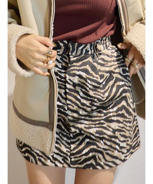 ■デザイン定番人気のミニスカート。台形スカートなので太もも周りをカバーし美脚に見せてくれます。デイリーに使いやすいブラックとコーデのアクセントにぴったりなゼブラ柄でご用意。■スタイリングあって困らないブラックはロンTやニットなど幅広いアイテムと合わせていただけます。ゼブラ柄はカラーニットなどと合わせてエッジの効いたEVRISらしいコーデに。オーバーサイズのフーディーの下からちらりと見せるのもおすすめ。-------------- 透け感:なし生地の厚み:普通伸縮性:なし --------------EVRIS人気のミニスカートです。シルエットはすっきりとしたシンプルな台形スカートとなっています。無地ブラックとゼブラ柄との2色展開です。