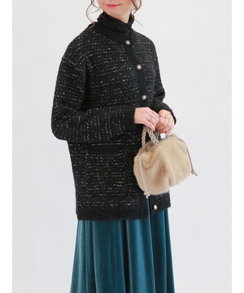 ツイードのような生地が落ち着きのある印象を与えるニットジャケット。程よい長さの丈感で、上品な女性らしさを演出します。フロントにあしらわれたボタンがコーディネートのアクセントに◎すっきりしたパンツと合わせてきれいめなスタイリングを楽しめるアイテムです。※商品画像は、撮影環境やお客様のご利用のPC・スマートフォンのモニター環境などにより実物と色味に差異がある場合がございます。★《お気に入り登録》でお得な情報をGET★① 商品ページ内のハートマークをクリック!② 以下通知が受け取れます!「再入荷」「ラスト1点」「特別セール」etc..\ブランド、ショップのお気に入りも是非!/