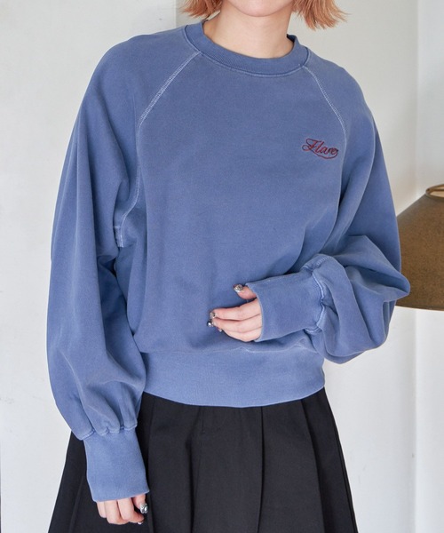 着回し抜群なショート丈スウェットが登場!ピグメント加工を施し1点1点違った風合いがヴィンテージライクなアイテム。配色のカラー刺繍もコーデのアクセントに。ラグランスリーブと程良い袖ボリュームがトレンドライクなシルエットに仕上げました。コンパクトなシルエットで裾がウエストで止まりスタイルアップ効果抜群です。※サンプルにて撮影をしておりますので、実際の商品とは仕様や加工・サイズ等が若干異なる場合がございます。※撮影環境により、光の当たり具合で色味が違って見える場合があります。あらかじめご了承下さい。※ご注文いただいた予約商品のお届け時期の確認は、注文履歴ページより行えます。