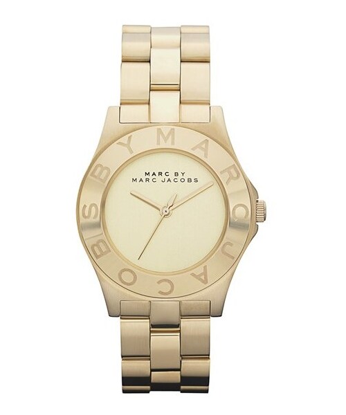 A cleanly styled watch displays three-hand time on a brushed, numberless dial surrounded by a chic logo-etched bezel. 36mm case; 18mm band width. Deployant clasp closure. Adjustable bracelet. Links can be removed at your local Nordstrom. Find a store . Water-resistant to 5 ATM (50 meters). Stainless steel with gold, rose-gold or brown ionic plating/mineral crystal. By MARC BY MARC JACOBS; imported.
