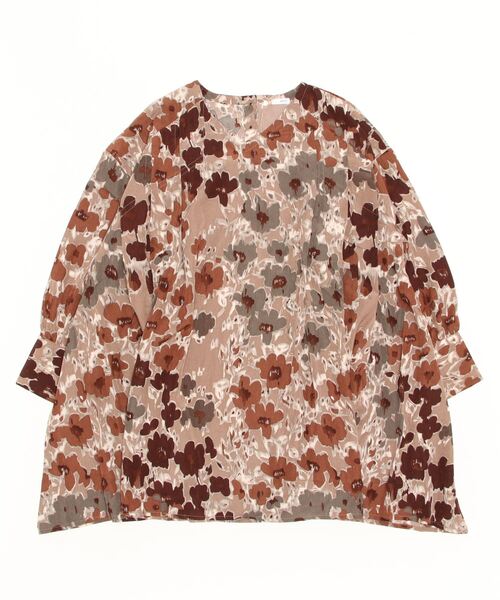 絵画のようなフラワープリントが、コーディネイトにインパクトを持たせてくれる個性的なプルオーバー。落ち感のある生地の優雅なドレープと、ダークな色味が大人なムード。サッと纏うだけで、スタイルに変化をつけてくれる1枚です。
