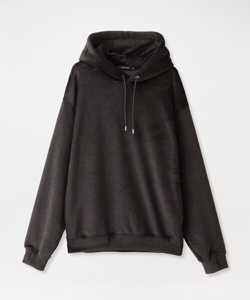 ユニセックスで着用できるファージャージパーカー【素材】毛足が長くやわらかな肌触りのジャージ素材です。程よい光沢感が、上品で高級な雰囲気です。ストレッチ性にも優れており、1度着用したら手放せなくなる着心地の良さです!【シルエット/デザイン】オーバーサイズでリラックス感のあるパーカーです。袖口、裾口には共生地を使用しており、リブとは違いキレイ目な見た目に。袖をやや長めに作っており、寒い時にはフィンガーホールに親指を通すことでグローブの代わりになります。女性の方でもオーバーサイズで着用頂けますのでオススメです。【スタイリング/その他】ワンマイルウエアとして同素材のジョガーパンツ(品番:61R14850)を揃えておけばセットアップでの着用が可能。それぞれ単体での着用も可能なのでコーディネートの幅が広がります。