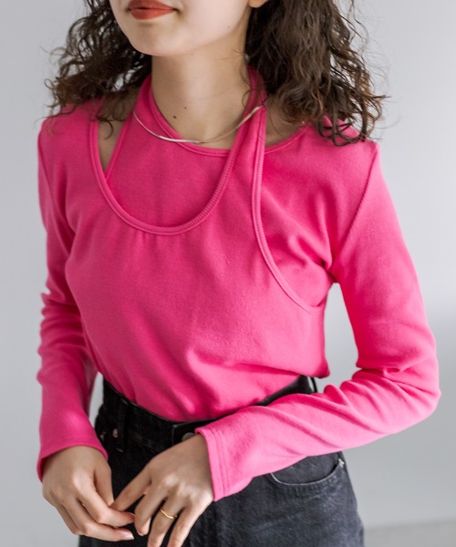 1枚で華やかに決まる!デザイントップス! 商品ポイント ・トレンドのレイヤードスタイルが1枚で叶う春ニット! ・肩の抜け感が女性らしく、華奢な印象に◎ ・伸縮性のある素材感で着心地抜群! ・ベーシックに使えるアイボリー・ブラックに加えて、鮮やかなピンクの3色展開! スタイリングポイント ・1枚でスタイリングの主役に決まるトップスです! ・ハイウエストボトムに合わせてスタイルアップ効果抜群に◎ ※洗濯、取り扱い 洗濯:40度限度 手洗い アイロン:中温150℃まで (あて布使用) タンブル乾燥:不可 ------------------------------------------------------ 裏地:なし 伸縮性:あり 光沢感:なし 生地の厚さ:普通 ------------------------------------------------------ ------------------------------------------------------ 商品のお気に入り登録➡ お気に入りアイテムの値下げ・再入荷・在庫1点などの通知を受け取ることができます。 ブランドのお気に入り登録➡ 新商品や再入荷、セール、クーポン配布などお得な情報を受け取ることができます。 ※サイト上のカラー名と、お届け商品に記載されているカラー名が異なる場合がございます。 ※商品の色味は、撮影場所や光のあたり具合などにより色味が違って見える場合が御座います 。 また、お客様のお使いのPCのモニター環境などにより色味が違って見える場合が御座います。予めご了承の上ご注文下さい。 ※ご注文いただいた予約商品のお届け時期の確認は、注文履歴ページより行えます。 ------------------------------------------------------
