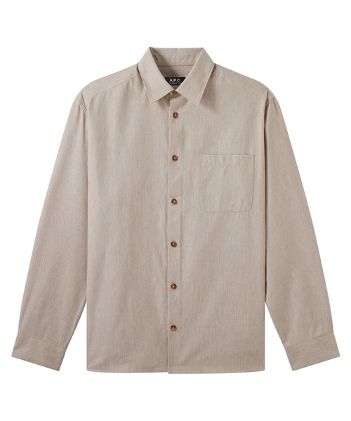 刺繍入りポケット付杢ベージュのシャツ.*ストレートカット.*クラシックカラー.*左胸に同色のA.P.C.ロゴ刺繍入りポケット1つ.*コントラストを付けたボタン.