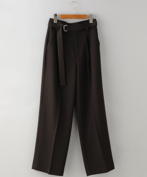 ーーー オンオフ使えるストレートパンツ! ベルト付きで、お好みのウエスト調整可能◎ ーーー 【デザインと特徴】 タックとセンタープレスがどちらも入ったデザインのワイドパンツ! タックが入ることで、腰回りのカバー力が叶います。 また、センタープレスの効果ですっきりとしたストレートシルエットで バランスが取りやすいです。 程よいしなやかさとハリ感を併せ持った素材で、 落ち感もある分、オンオフ問わず使いやすいです。 ややハイウエスト位置での着用も可能で、スタイルアップ効果も 期待出来ます◎ A part by定番の嬉しい内側アジャスター付き! 【スタイリング】 ベルトを生かして、ハイゲージのニットをインスタイルで。 ウエスト位置を高く見せていくのもおすすめです。 センタープレスも入っているので、ミドル丈のトップスを フロントインしてラフに着るスタイリングもしやすいです。