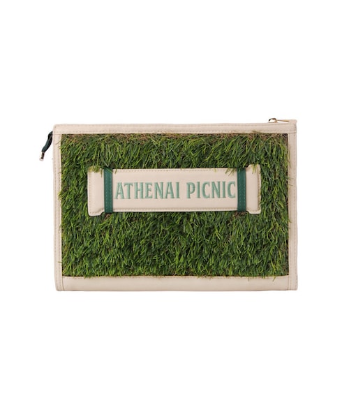 PAMEO POSE 2015SSのシーズンテーマを具現化したクラッチバッグ。手を通すハンドル部分にはテーマの“ATHENAI PICNIC(アテナイピクニック)”のロゴが刺繍されており、ボディーには一面に人工芝が敷かれております。とても大胆なデザインですが実際に鏡で合わせてみるとすんなりコーデに馴染みます。寒さが続く早春にも小物で春らしさをプラス出来るアイテムです。※画像はサンプルになるため実際の商品と多少異なる場合がございます。