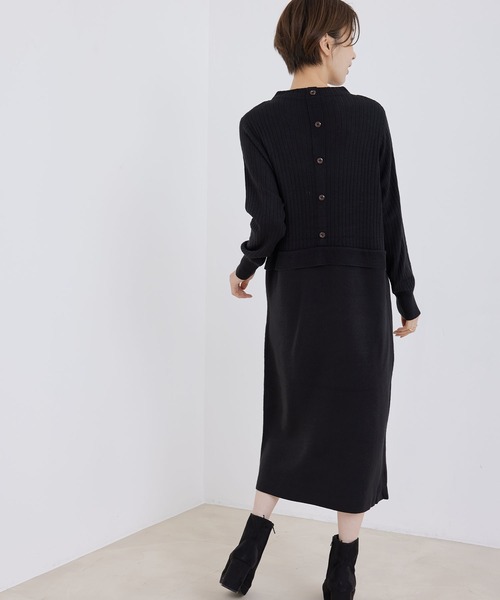 【デザイン・シルエット】 バックシルエットも抜かりなく可愛い◎ ゆったりシルエットで楽な着心地のボトルネックのニットワンピース。 【素材感】 柔らかなニット素材 【カラー】 クロ(01) グレー(09) ブルー(44) 【スタイリングポイント】 足元は綺麗めもカジュアルもどっちらも相性が良いですが 今年は流行りのロングブーツやサイドゴアブーツ合わせで是非◎ 裏地:なし 光沢感:なし 透け感:なし ポケット:なし 伸縮性:あり 生地の厚さ:普通 ボタン:飾りボタン その他仕様:なし 季節:秋~冬 ※撮影時の光、お使いのモニター環境によって色の見え方が違う場合がございます。予めご了承ください。 モデル身長:162cm 着用サイズ:M