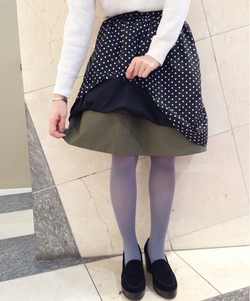 who's who Chico(フーズフーチコ)【WEB期間限定☆SPECIAL PRICE!!!】 ハリ感のあるグログランの素材を使用したリバーシブルフレアスカート。裏地がドット柄なので、雰囲気に合わせて変えていただけます☆ふんわりとしたシルエットが女性らしくフェミニンな印象に演出してくれます。春も使えるベストアイテムです♪