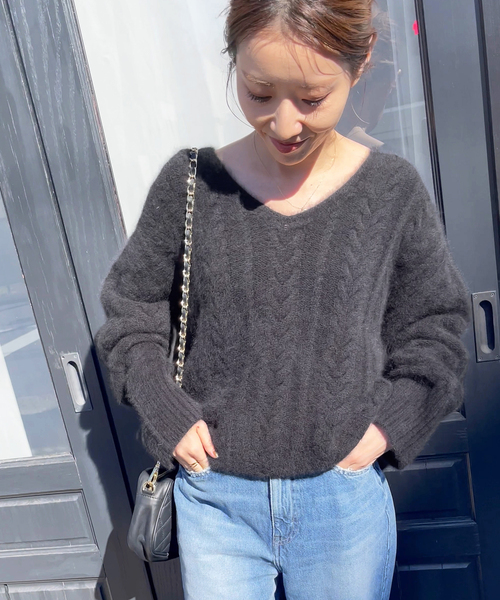 【2022A/W】 Spick & Span ふわっとした柔らかい肌触りの毛足のあるフォックス混の糸を使用いしたケーブルニット。 上質なフォックスを使用してるのでチクチクせず柔らかく、軽いのが特徴です。 女性らしさを引き立てるVネック、程よく落ち感がある編地は着たときのシルエットがすっきりと、柔らかみがあり優しいフェミニンな雰囲気です。 重くなりがちな冬のコーディネートを軽やかにし、どんなボトム合わせでも女性らしい印象に。 ※取り扱いについては、商品についている品質表示でご確認ください。 ※こちらの商品は、Spick & Spanでの取り扱いになります。直接店舗へお問い合わせの際は Spick & Span店舗へお願い致します。 ※照明の関係により、実際よりも色味が違って見える場合があります。 またパソコン・スマートフォンなどの環境により、若干製品と画像のカラーが異なる場合もございます。 ※商品の色味は、商品アップ画像をご参照ください。 モデルサイズ:身長:164cm 着用サイズ:フリー 本体:ドライクリーニング