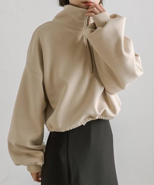 トレンドのハーフZIPがスウェット素材でmlineから登場! 商品ポイント ・ショート丈でバランスのとりやすいデザイン◎ ・裾が絞れるデザインなのでスッキリ見せてくれます。 ・裏起毛でこれからの時期も大活躍です! スタイリングポイント ・ショート丈なのでハイウエストボトムスと相性抜群です。 ・ハーフZIPを少し開けてインナーにチュールアイテムを合わせると 抜け感がプラスできます! ※洗濯、取り扱い 洗濯:40度限度 手洗い アイロン:低温110℃まで スチームなし(あて布使用) タンブル乾燥:不可 ------------------------------------------------------ 裏地:なし 伸縮性:なし 光沢感:なし 生地の厚さ:ふつう ------------------------------------------------------ ------------------------------------------------------ 商品のお気に入り登録➡ お気に入りアイテムの値下げ・再入荷・在庫1点などの通知を受け取ることができます。 ブランドのお気に入り登録➡ 新商品や再入荷、セール、クーポン配布などお得な情報を受け取ることができます。 ※サイト上のカラー名と、お届け商品に記載されているカラー名が異なる場合がございます。 ※商品の色味は、撮影場所や光のあたり具合などにより色味が違って見える場合が御座います 。 また、お客様のお使いのPCのモニター環境などにより色味が違って見える場合が御座います。予めご了承の上ご注文下さい。 ※ご注文いただいた予約商品のお届け時期の確認は、注文履歴ページより行えます。 ------------------------------------------------------