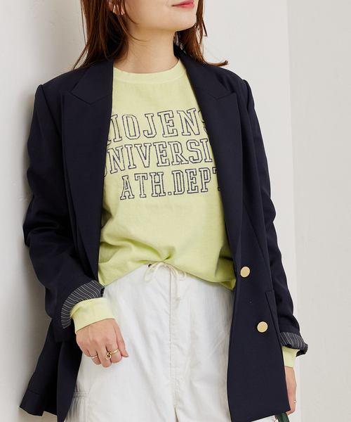 【2023 SS】 JOURNAL STANDARD 毎シーズン人気を誇る、【Odub/オーダブ】の別注アイテムがお目見え カラー・グラフィックをリクエストした別注アイテム。 ボディの裏からプリントされたデザイン性もポイント。 ベーシックカラーから春らしいシーズンカラーまで豊富にご用意しております。 【ご購入時の注意点】 ロゴのかすれた風合いを出すために、ボディの裏からプリントし、インクを染み込ませています。そのため、プリントに個体差がございますが、デザインの特性となります。 ブラック(001)は、ボディ表にかすれた雰囲気になるようにプリントしています。他のカラーとプリント手法が異なりますのでご注意ください。 ご理解・ご了承のうえ、お買い求めください。 【Odub/オーダブ】 2021年よりスタートした日本のブランド。 ""A Fusion of Vintage and Elegance"" リアルなヴィンテージの再現の中にあるエレガンスをコンセプトに、膨大なヴィンテージアーカイブの中から厳選されたスペシャルなアイテムを研究を重ねた技術で再現。単なるレプリカには終わらない、どこか品を感じさせるアレンジを施し現代のスタイリングにマッチする新たな価値創造を目指すブランド。 ********************** 透け感:ホワイトのみややあり 裏地:なし 伸縮性:ややあり 光沢感:なし 生地の厚さ:やや薄手 ********************** 【スタッフ着用コメント】 《スタッフO》 年齢:30代前半/身長:158cm/体型:普通/普段サイズ:M/着用サイズ:フリー サイズ感:ゆとりはありますが、そこまでオーバーサイズではなくスッキリと着用していただけます。 素材感:綿100%で柔らかく着やすいです。 着心地:柔らかくやや薄手なので、レイヤードするのにも丁度良い生地感です。ジャケットやカーディガン、スウェットのインナーにも活躍します。一枚でも着やすいです。 ※あくまでも個人の感想です。 ********************** ※取り扱いについては、商品についている品質表示でご確認ください。 ※照明の関係により、実際よりも色味が違って見える場合があります。 またパソコン・スマートフォンなどの環境により、若干製品と画像のカラーが異なる場合もございます。 ※商品の色味は、商品アップ画像をご参照ください。 ※サイズについて 弊社販売サイズ:メーカーサイズ フリー(009):F ※カラー表記について 弊社カラー:メーカーカラー ブラック(001):BLACK ホワイト(010):WHITE ブルー B(046):BLUE イエロー A(081):YELLOW 本体:手洗い可能