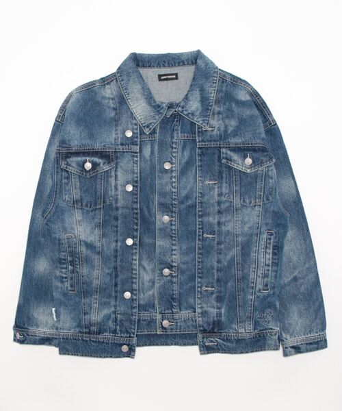 シルエットにこだわった重ね着風デニムジャケット 13オンスのデニムを採用、地厚ながらもブリーチ加工を施してることでエッジをプラスしながらも肌触りの良い柔らかい触り心地に まるでデニムを重ね着しているかの様なデザイン シルエットはショルダーをドロップさせ、身幅を大きく設定しユニセックスでの着用が可能 ボリュームがあるシルエットなので、インナー選ばずに羽織るだけでコーディネート完成します。 胸に2つのポケット、ウエスト部分に2つのポケット合計4つのポケットにバック裾部分の調整ボタンがついておりデイリーウェアとして実用性も抜群 ※着用、お取り扱いの際は商品についておりますアテンションタグ、洗濯ネームを必ずご確認ください。 ※店頭及び屋外での撮影画像は、光の当たり具合で色味が違って見える場合があります。 商品の色味はスタジオ撮影の画像をご参照ください。 ※商品の色味につきまして、お客様のお使いのPCのモニター環境により実際のカラーと画像の色味が違って見える場合が御座います。 予めご了承の上、ご注文下さい。 ※他のキャンペーンにより、期間中に価格が変動する場合があります。 ※セールは予告なく終了させていただく場合もあります。