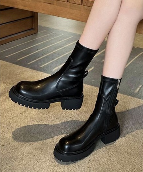 トラックソール厚底ショートブーツ ごつめのフォルムが今っぽい、トラックソールショートブーツ ストレッチ性のあるスムース素材で履き心地は抜群。 足に優しくフィットし、すっきりとしたシルエットを演出します。 ソールは高すぎず、高低差が少ないため、歩きやすさも◎ 底材は合成ゴムでグリップ力があり、足元の悪い日でも滑りにくく、安心して着用いただけます。 カラーは定番のブラックと、フェミニンコーデにも合わせやすいアイボリーの2色展開です。 ■カラー アイボリー、 ブラック ■サイズ / 日本サイズ 【35】22.5cm 【36】23.0cm 【37】23.5cm 【38】24.0cm 【39】24.5cm 【40】25.0cm <注意点> ・色合いはモニター環境により若干の誤差が出ます。 ・サイズは測り方により若干の誤差が出る場合がございます。予めご了承ください。 ・入荷・生産時期により、色、サイズ、素材など多少異なる場合がございます。予めご了承ください。 ・本製品は生産過程におきまして、生地を織る際の糸の継ぎ目や多少のほつれが生じることがあります。 ・簡易包装となっており、保管・梱包時にシワ・偏りが伴う場合がございます。 ・靴箱は、海外からの入荷及びお届け迄の配送の過程で汚れや破損のあるものがございますが、 予めご了承ください。