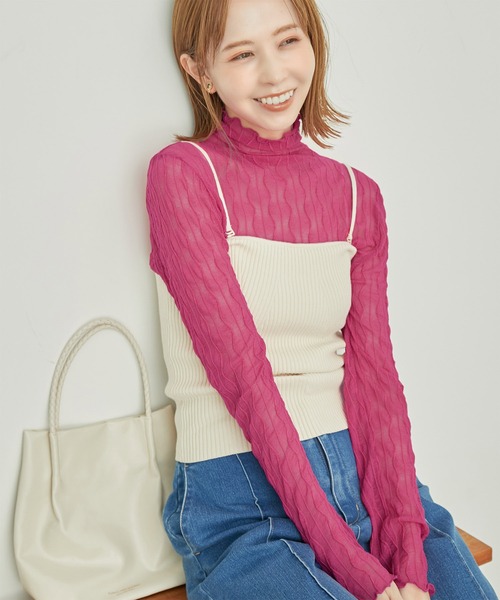 冬のレイヤードを楽しくしてくれる万能カットソー。 【素材感】 ・伸縮性があり着心地の良い素材感。 【デザイン・シルエット】 ・バックスタイルのセンターシームがアクセントを効かせるタートルカットソー。 ・レイヤードが楽しめるシアーな質感。 【カラー】 ・ベーシックカラー、ビビッドカラーを交えた、全9色展開。 ・新色ピンク(64)は、既存カラーピンク系(65)よりもくすんだピンクになります。 【スタイリングポイント】 ・インに柄物キャミソールなどを合わせて個性をアピール。 ・ジャンパースカートやベストのインナー使いにも◎。 ----------------------------- 裏地:なし 透け感:あり 伸縮性:あり 生地感・厚さ:薄手 季節:春・秋 ----------------------------- ※撮影時の光、お使いのモニター環境によって色の見え方が違う場合がございます。 ※前回好評だったシアージャガードタートル(品番:GDM52270)と同型です。 ※全カラーモデル身長:165cm 着用サイズ:38