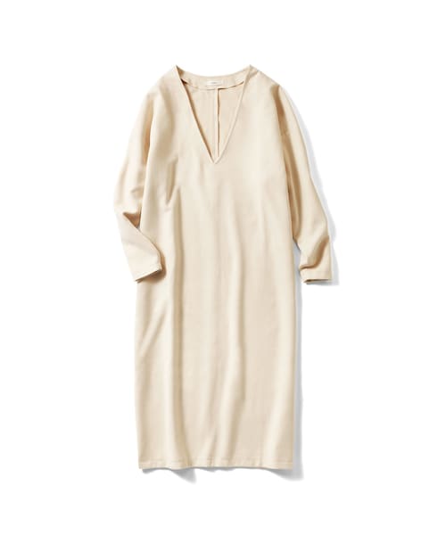胸もとでレイヤードを楽しむ冬のマキシ丈ワンピース。おうち着みたいにらくちんなのに、おしゃれ見えする深めVネックのマキシ丈ワンピ。ウールライクなきれいめ素材で、からだにつかず離れずのすとんとしたシルエットに仕上げました。ロンTやハイネックなどレイヤードが楽しめる深めのVネックは、すっきり見え効果にも。バックスリット入りで脚さばきもよく、便利なポケット付きです。■FROM IEDITプランナー―生地の厚さ:やや厚みのある布はく素材です、―透け感:ありません。―伸縮性:ややあります。―コメント:たっぷりした長めのマキシ丈でゆとりはありながらもすっきりしたシルエットが特徴的なワンピースです、深めのVネックがシャープな印象で着ぶくれして見えません。