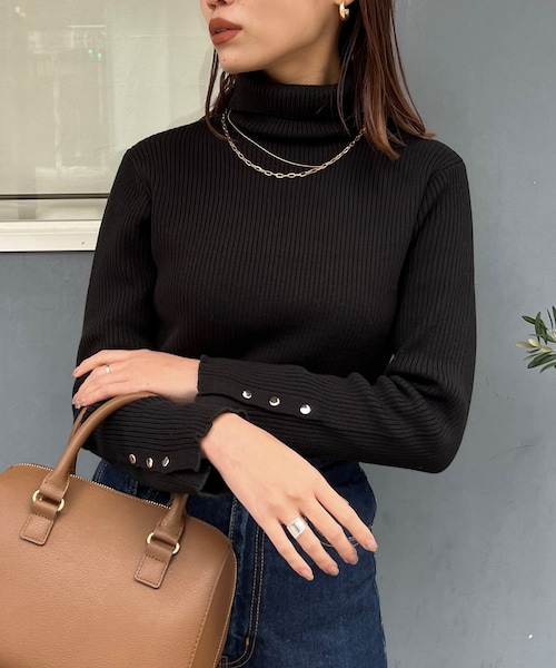 何枚でも欲しい冬の定番インナーリブと袖のボタン使いがポイントのタートルニット■pointシェトワ定番デザインの袖ボタンインナーシリーズにタートルニットが登場。もちっとした風合いの生地が着心地良く、メロー始末の袖デザインでインナー感がなく1枚でもこなれた雰囲気で着用していただけます。ベーシックなカラー展開でオンオフ問わず使えるのはもちろん、程よい厚みでより長く愛用したくなるニットです。■coordinateサロペットやジャンスカのインナーとして、シャツの中に入れてレイヤードコーデにもオススメです。ベーシックなイアテムなので、着回し力が高くどんなテイストともマッチします。--------------------------------------------------透け感:なし裏地:なし伸縮性:あり生地の厚さ:普通洗濯方法:手洗い可--------------------------------------------------【キーワード】 #体型カバー #着痩せ #大人カジュアル #お出かけ #ママコーデ #シンプル #プチプラ #女子会 #高見えこーで #リラックス #デート--------------------------------------------------※商品画像は着用イメージです。光や角度により、実物と色味が異なる場合がございます。また表示のサイズ感も実物とは若干異なる場合もございますので、ご了承ください。※着用、お取り扱いの際は、商品についている品質表示とアテンションタグを必ずご確認ください。--------------------------------------------------♡をクリックでお得な情報をお知らせいたします。<商品お気に入り登録>お気に入りアイテムのお値下げ・再入荷・在庫ラスト1点など通知を受けることができます。<ブランドお気に入り登録>Chez toiの新商品・再入荷・SALE・クーポン配布などお得な情報を受けることができます。--------------------------------------------------Cheztoi/シェトワフランス語で「あなたの家」という意味。自分にまっすぐでそしてしなやかに生きる女性に向けたブランドです。