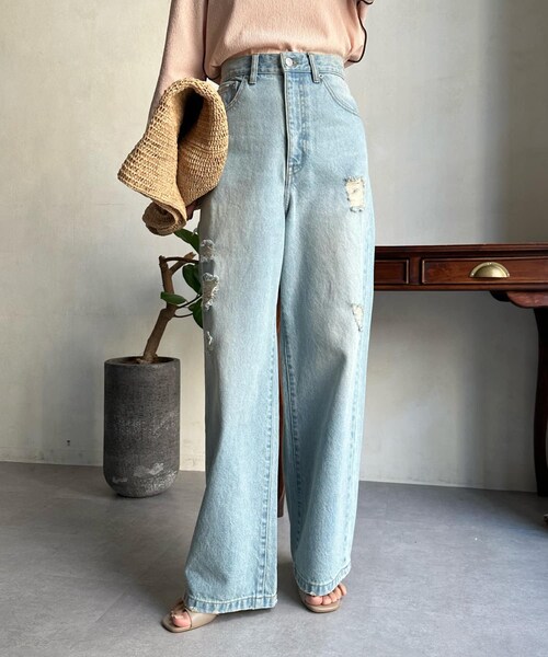 ■2023 SPRING & SUMMER ITEM■軽やかなカラーのデニムで爽やかに。いつものスタイリングを新鮮な印象へと導いてくれる、ダメージワイドデニム。ウォッシュ加工を掛け、ヴィンテージライクな表情に仕上げました。足のラインを拾いにくいワイドなシルエットで、窮屈感のない履き心地を表現。腰位置でゆるっとルーズに履いたり、ウエスト位置にベルトを締めて履いたりとアレンジを効かせて着回していただけますよ。- POINT -・いつものスタイリングを新鮮な印象に・ヴィンテージライクな加工をプラス・脚のラインを拾いにくいワイドシルエット--------------------------------洗濯:手洗い可能透け感: なし裏地: なし伸縮性: なし光沢感: なし--------------------------------【 ♡ をクリックでお得な情報をお知らせいたします 】〈 商品のお気に入り登録 〉 お気に入りアイテムのお値下げ・再入荷・在庫ラスト1点など通知を受けることができます。〈 ブランドのお気に入り登録 〉DOUDOUの新商品や再入荷、セール、クーポン配布などお得な情報を受けることができます。--------------------------------------※ 生産の都合上、お届け時期が前後する場合がございます。※ 掲載画像の商品の色味は、 撮影場所や光の当たり具合などにより色味が異なって見える場合がございます。 また、お客様のお使いのPC・スマートフォン等のモニター環境などにより色味が異なって見える場合がございます。予めご了承の上ご注文ください。 ※ 着用、お取り扱いの際は、商品についている品質表示とアテンションタグを必ずご確認下さい。
