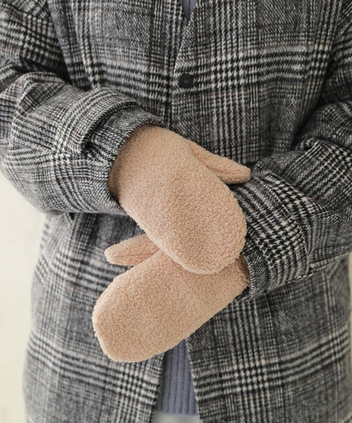『大人のお洒落なあったかコモノ。』 肌寒い季節だってお洒落にお出掛けできる♪ ほっとするあたたかさに包まれる、ミトングローブ。 表面はもこもこのボア素材×裏面はシャギー素材で肌触りが良く、指先まで暖かな付け心地を叶えます。 シンプルデザイン&ベーシックカラーで可愛くなりすぎず様々なコーデに合わせやすいところが嬉しいポイント。いつものスタイルにプラスするだけで、シーズンムード高まる着こなしへと導きます。 秋冬のお洒落に欠かせない、ボアミトングローブです。