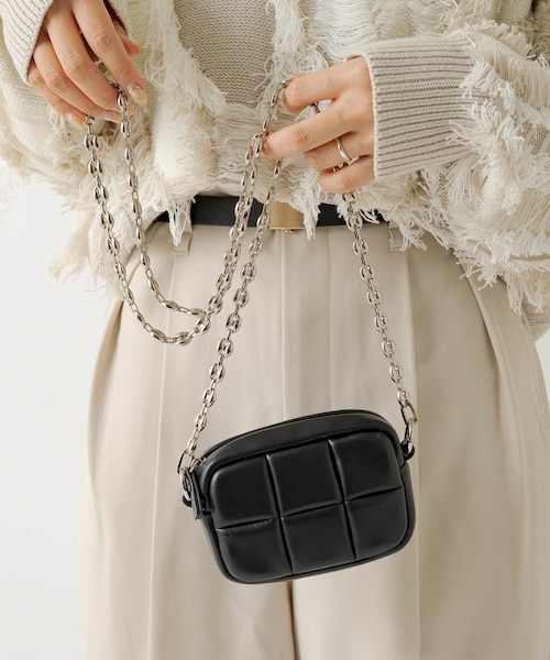 アクセサリー感覚で持てるミニバッグ商品ポイント・光沢の少ないさらっとした質感のヴィーガンレザー・ダウン調の法制でスクエアに模られたデザイン・カードや鍵などが入るミニマムなサイズ感・チェーンのメタル感がスタイリングのアクセントに〈ADD CULUMN〉アドカラムは「列を追加する」という意味。アニマルフリー、ファーフリーの素材を使用した、 バッグを中心としたファッション小物ブランド。ベーシックとは普遍的なもの 。私たちが提供するエコ、ハイクオリティー、ベーシックをあなたのライフスタイルに。※撮影場所やお使いのモニター環境により若干お色味が異なる場合がございます。特にロケの撮影では明るく見える傾向にございます。※商品はサンプルで撮影をしております。若干の仕様が変更になる場合がございますので予めご了承の上ご注文くださいますようお願いいたします。▼商品のお気に入り登録完売カラーの再入荷通知や、ラスト1点の通知、セールの通知も受け取ることができます。▼ブランドのお気に入り登録新商品や再入荷など、いち早くブランドのお得な情報を受け取ることができます。