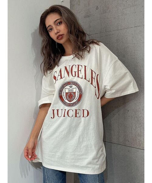 商品コメント:ヴィンテージのような雰囲気のクラック加工が施されたカレッジプリントが可愛いTシャツです。 背中がレースアップになっており、リメイクライクなデザインとヘルシーな肌見せがポイントです。 ルーズなサイズ感で幅広い方にお楽しみいただけます。 『JUICED』(意味:楽しみ) コーデ:程よいルーズサイズなので、ボトムスにインして着用頂くこともできます。BACK RIPPEDデニムショートパンツと合わせていただくのがオススメです。 ボーダー LOOSEニットカーディガンを上から羽織って頂くと、スクールカジュアルコーデ風になって可愛いです。