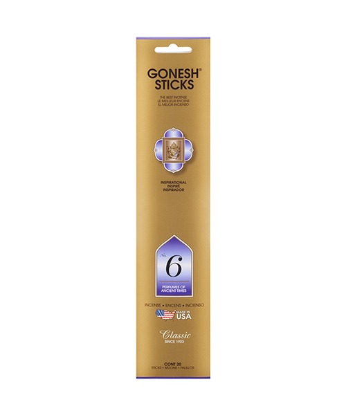 アメリカの老舗お香メーカーであるGENIECO(ジェニコ)社が、90年の歴史の中で作り上げてきたお香ブランドです。自由を謳歌し自然を愛するアメリカの若者達を中心に人気を呼び、いまや全米No.1の地位を誇ります。 中でも“No.8”の香りは絶大な支持を集め、同ブランドの産んだ最高傑作と評される逸品です。 90年の歴史をもつ秘伝のレシピによる、リッチでコンプレックスなフレグランスを練り込んだチャコール(木炭)を竹棒にまとったスティックタイプのお香です。 Classic Series 【香り】 ピンク:No.4 Orchard and Vines 果樹園やワイン畑にそよぐ風をイメージした、ピーチやベリー、ブドウ等の爽やかで甘くフルーティーな香り。人気ナンバー2。 パープル:No.6 Ancient Times 古代に流れる空気、風をイメージした、乳香などバルサムの香りと、温かいウッディ感をあわせもった重厚でオリエンタルな香り。 ブルー:No.8 Spring Mist 春の日の朝霧に立ち込める空気感をイメージした、ほのかに甘いフルーツ系の瑞々しい香り。絶大なる人気を誇るKing of GONESH。 グリーン:No.12 Green Mountains ロッキーマウンテンの壮大な自然の中で、木々に囲まれながら小さく咲く花々を想わせる、グリーンフローラルの爽やかな香り。 ライム:No.7 Earthly Wonders 地球から沸き上がる自然の神秘、大きな力をイメージしたGONESH独特の強くて甘い香り。 <価格改定のお知らせ> 2025/12/10より、原材料価格の高騰、運送費用などの上昇により価格改定をさせていただきます。 商品タグに記載している価格につきまして、旧価格のものが混在している場合がございます。ご了承下さいますよう、お願い申し上げます。