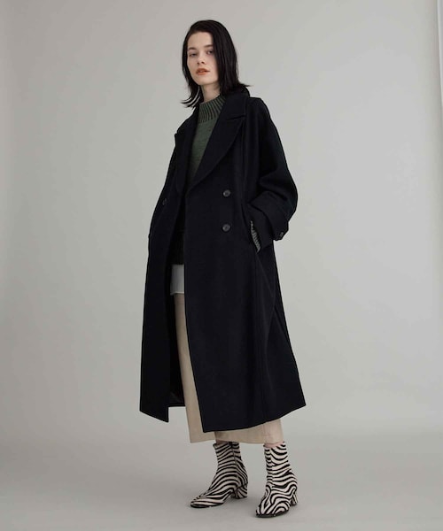 透け感:なし裏地:あり伸縮性:なし県産地:岐阜県・ゆったりした形のコクーンシルエットのオーバーサイズコートです。・オーバーサイズのニットを着てももたつかず着れます。・ウール100%ですが軽いのでストレスなく着用できます。