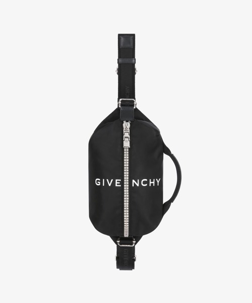 GIVENCHY 4Gジッププラーをあしらった装飾的な4Gジップクロージャー付きナイロン クロスボディバッグ。Gジップライン。フロントにホワイトのGIVENCHYシグネチャープリント。サイドにハンドル。カーフスキンのディテールとメタルバックルが付いたGIVENCHYジャカードキャンバス アジャスタブルショルダーストラップ。サイドのメタルバックルでバッグの容量を調節可能。シルバーフィニッシュメタルのディテール。