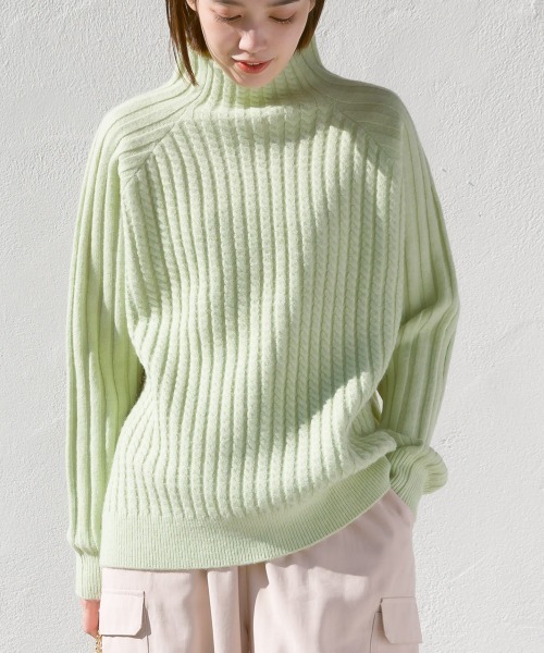 ふわふわの映えるボリュームニット♪ ■DETAIL 軽量でふわっとボリュームの人気ベーシックニット。 前の立体的なケーブル編み、袖のワイドリブ。ニットに立体感を出して見た目もキュートな仕上がりに! ネックも締め付けすぎないスタンドネックが他にないデザイン。毎年即完売のニットです。 サイズ感も小さすぎず着心地も◎ ヘビーローテで使える理由はご家庭での手洗いが可能な所。 ■COORDINATE 今年は明るいニュアンスカラーを多く展開。 ボトムがベーシックなカラーで合わせてもニットが映える。パンツでもスカートでもボトムスを選ばずコーデできます。 ………………… 透け感…なし 厚さ…厚手 伸縮性…あり 裏地…なし ポケット…なし ………………… ★商品のお気に入り登録 登録すると、完売しても再入荷時に通知を受け取ることができます。 ほかにもお得な特典があるかもしれません♪ ★ブランドのお気に入り登録 新商品や再入荷などの情報を受け取ることができますので、是非ご登録ください♪