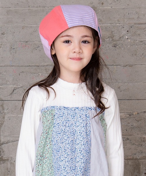 柄切り替えがアクセントになったベレー帽。コーディネートにプラスするだけでおしゃれなスタイリングになるアイテムです。