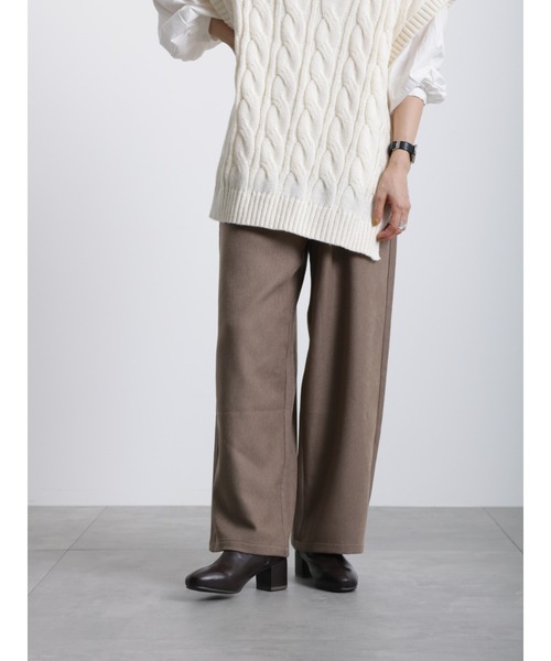 ストレートのようなシルエットでリラックス感のある着こなしを楽しめるパンツ。ウエストにはドローストリングを施し、さりげないアクセントとして活躍します。落ち着きのある色合いで、コーディネートに取り入れやすいのも魅力◎ゆったりとしたトップスと合わせてラフなスタイリングを実現できるアイテムです。※商品画像は、撮影環境やお客様のご利用のPC・スマートフォンのモニター環境などにより実物と色味に差異がある場合がございます。【その他採寸】F ウエスト:[後ゴム仕様]62cm