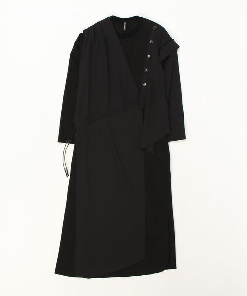 コンビネーションワンピース。左はシャツをリメイクしたようなデザイン、右はウエストからヒップにかけてドロストさせたゆるいデザインがアシンメトリーなデザインワンピースです。素材は、落ち感のあるストレッチ素材のマニッシュなピンストライプなので、身体に程よく馴染むライン、そして大人っぽいハンサムな雰囲気です。ウエストのドローコードを締めてもらうと腰で留まるのでさまざまな体型の方に着て頂きやすく、ウエストまわりもカバーしてくれて安心。肌にあたる生地は、左袖以外コットンスムースなので肌触りが良く、伸縮性もあり動きやすいワンピースです。ロンTに重ね着したようにレイヤードされたデザインですが、生地感とカラーにより上品な印象。◯別注ポイントウエスト部分にドローコードを入れてもらい、全体的にシャープにサイズ調整した事により1枚で美シルエットなワンピースにアップデート。ボタンはシルバーカラーにし、個性を出しました。【AULA AILA/アウラアイラ】自分らしさを大切にしながら、魅力を引き出し、何気ない日常に彩りを添え、纏うという高揚感から心を豊かにする、大人のハイエンドカジュアル