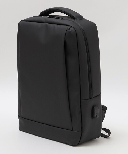 スタイリッシュなデザインで仕上げたSHIPSオリジナルのバックパックPUコーティングを施した水に強い生地で仕上げたバックパック。外側はフロントに大きめのジップポケット、サイドには折りたたみ傘やペットボトルが入るポケットを搭載。内側は小物類が入る多目的ポケットにペンホルダー、背面にパッド付のPCポケットを搭載しており、シンプルなデザインながらもユーザビリティの充実した仕上がりとなっております。また、あらかじめ内側にモバイルバッテリーを繋いでおくだけで、外側のUSBジャックからスマートフォンやPCの充電が可能。加えて背面にはキャリーケースに連結できるベルトが搭載されており、移動中や外でのお仕事にも対応できる仕様となっております。ビジネスシーンから普段使いまで幅広いシーンでの活躍が期待されるアイテムです。※生産状況により店舗にて販売する場合もございます。※画像の商品はサンプルです。実際の商品と仕様、加工、サイズが若干異なる場合がございます。※撮影環境による光の当たり具合やパソコンなどの閲覧環境によって、実際の色味と異なって見える場合があります。あらかじめご了承ください。商品の色味は商品単体で撮影した画像をご参照ください。